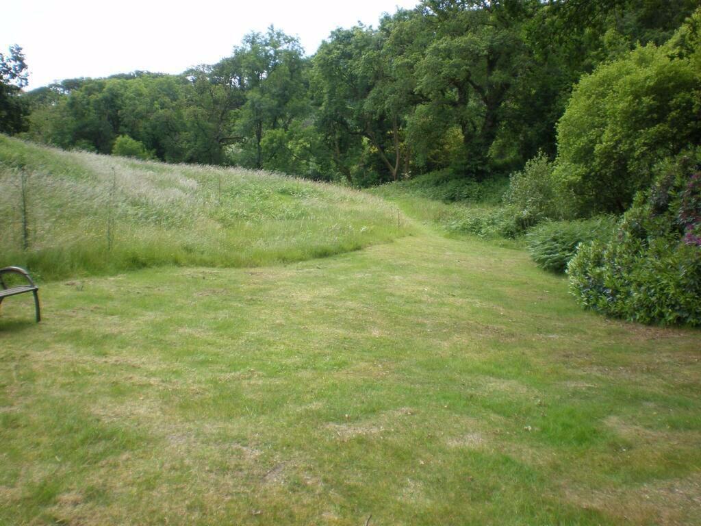 Modern bathroom with claw foot bath and mains shower over, hand basin and WC, part tiled with heated towel rack. Outside there is a small walled area for garden table and chairs to one side. The property overlooks a grass bank with mature trees beyond with paths through to the pool area. Small self service laundry facilities on site.