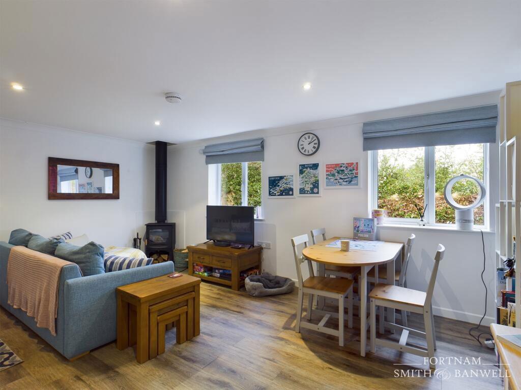 Upon entering there is a bright spacious open plan L shaped Lounge Diner. Space for a large suite, with a wood burning stove in the opposite corner for cosy evenings in. To the far end is space for a dining table with the kitchen opposite.