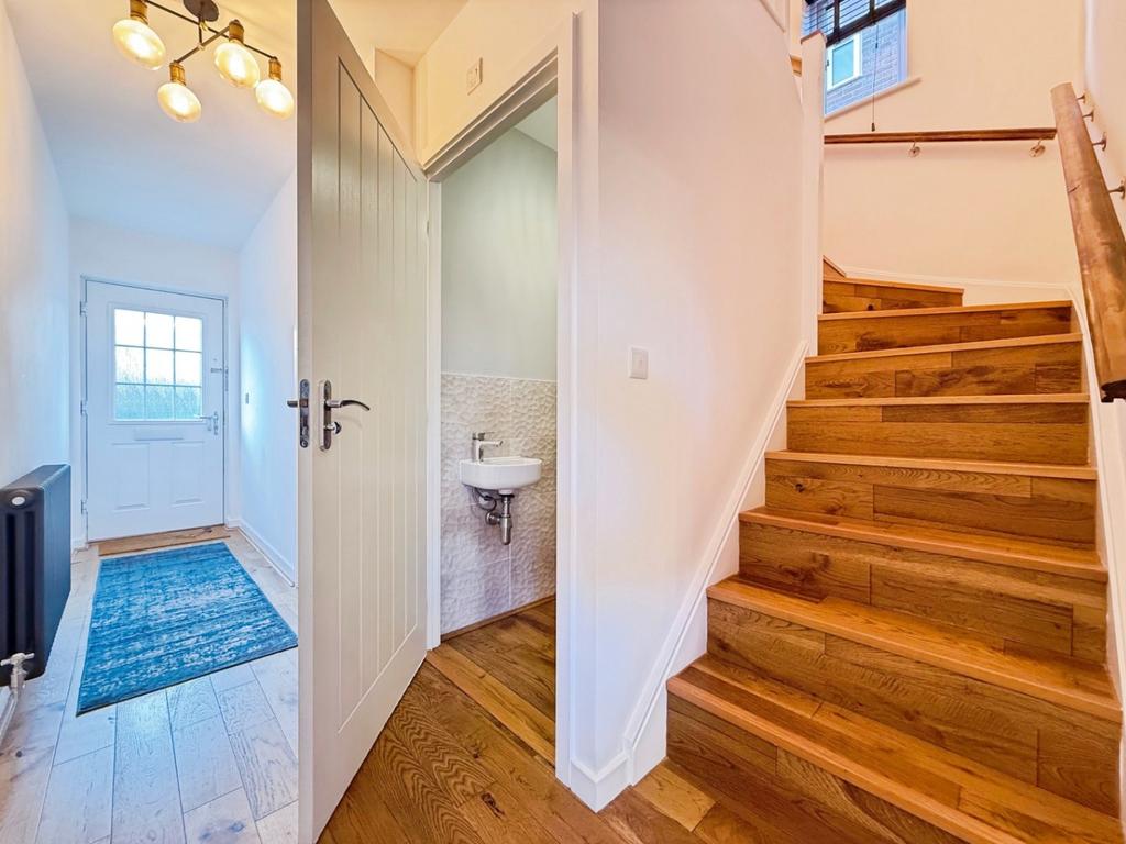 Loft access, door to storage cupboard, obscure uPVC double glazed window, wooden flooring, doors to: