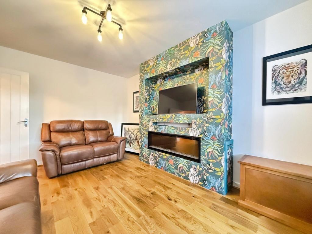 Inside, the welcoming entrance hallway leads to a downstairs cloakroom, a stylish lounge with a contemporary media wall, and a versatile sitting room/playroom ideal for family living. The heart of the home is the modern, open-plan kitchen/diner/lounge, designed for both everyday comfort and entertaining, with plenty of natural light throughout.