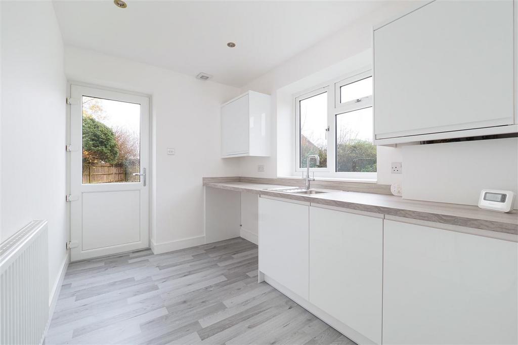 The south facing garden is mainly laid to lawn, with a patio area offering plenty of space for alfresco dining. To the front, the driveway provides parking for several cars, while a front gardenenclosed by a picket fencefeatures a pathway leading to the entrance.