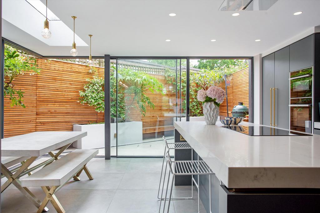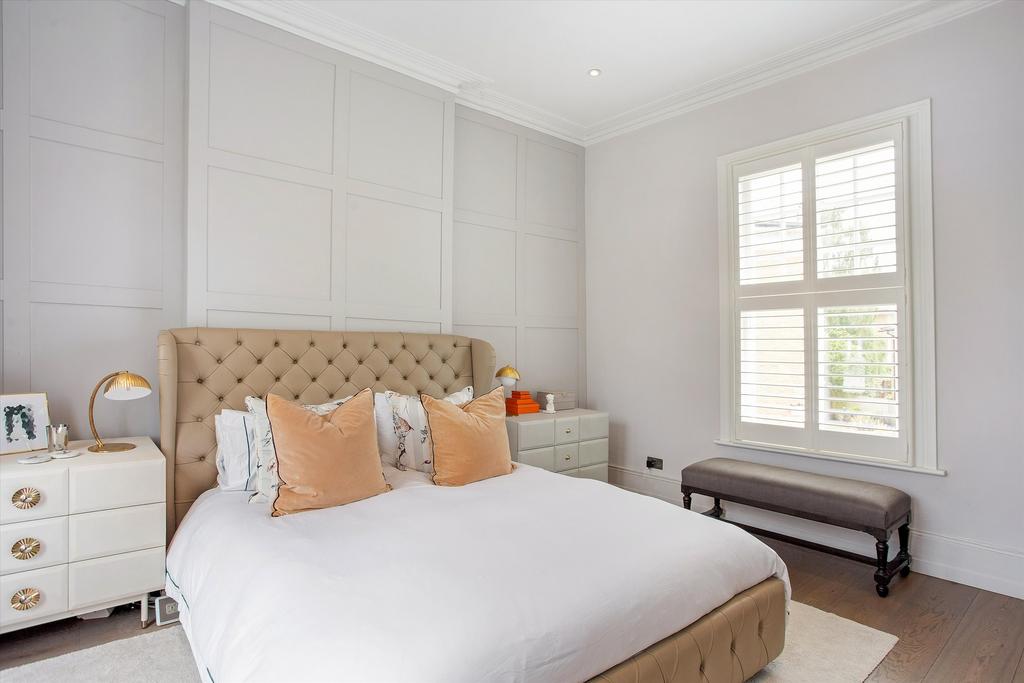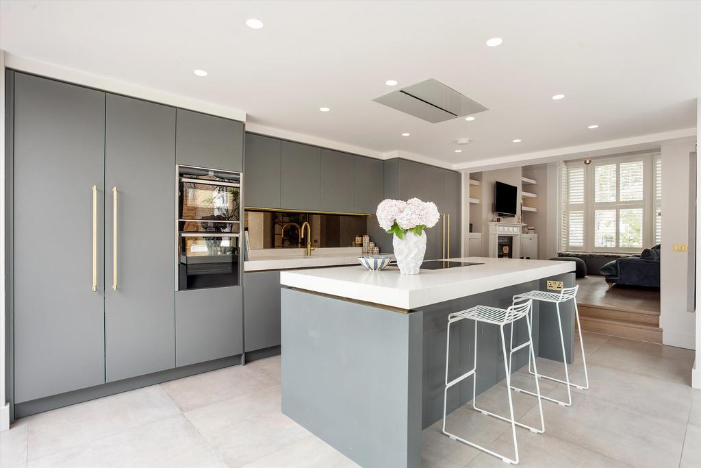 This beautiful home arranged over four floors offers 1,805 sq ft of contemporary living space alongside excellent living and entertaining space. Upon entering the property you are presented with the larger reception room on your left, with large bay windows allowing the room to be filled with light. There is a also a fireplace, making the room warm and cosy. On the right is the second reception room, perfect for hosting guests. This leads out into the open plan kitchen and dining room area, with gold ceramic detailing and marble features, also consisting of an island and French doors leading out onto the gorgeous patio area.