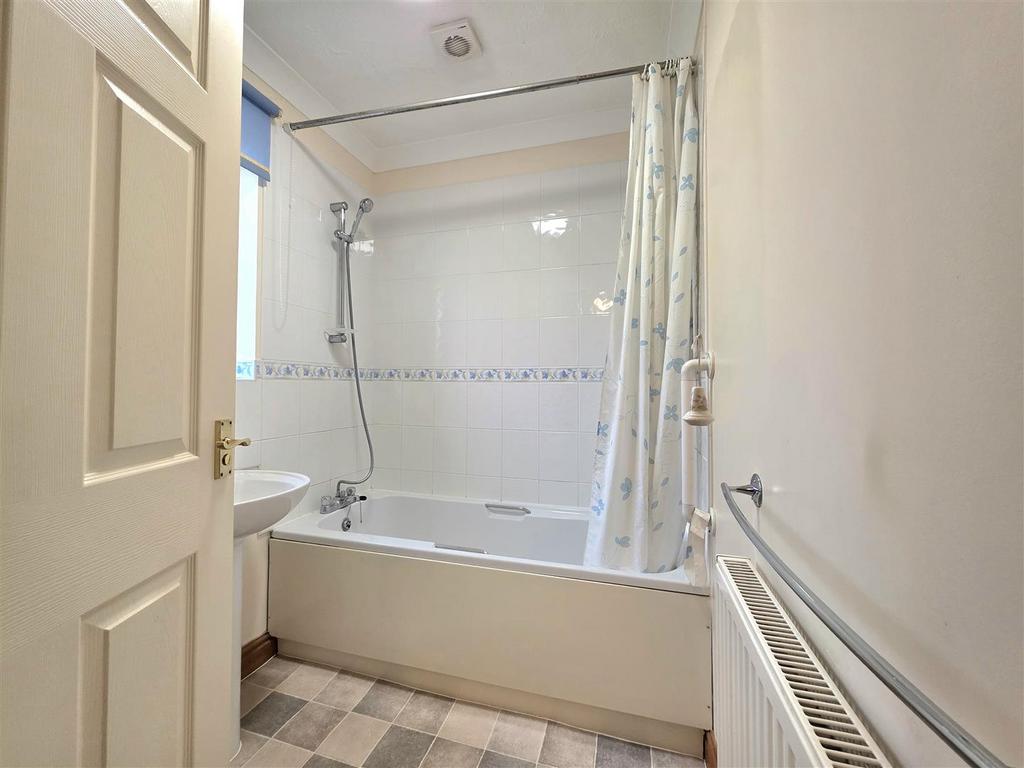 Bathroom - 2.11m x 1.91m (6'11" x 6'3") - Double glazed window to rear. Coving to ceiling. Extractor fan. Vinyl flooring. Radiator. Mirrored vanity cabinet. Fitted panelled bath with chrome mixer tap and shower attachment. Pedestal wash hand basin with chrome tops. Close coupled toilet with push button flush.