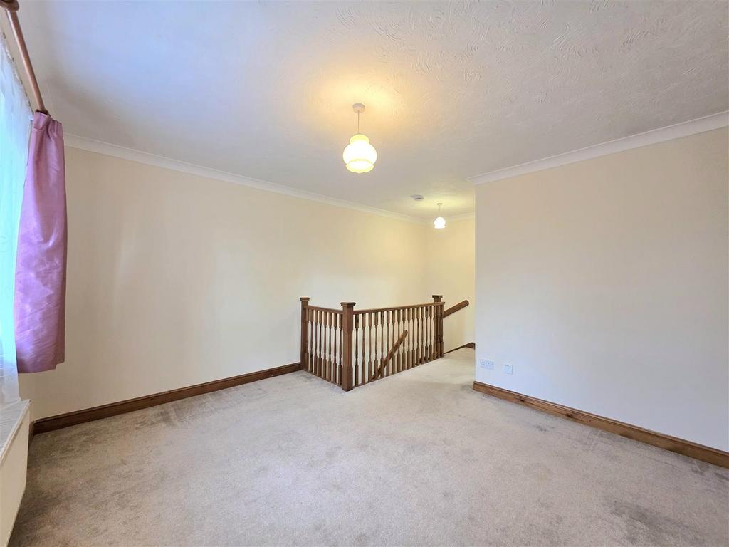 Kitchen/Dining Area - 4.47m x 3.42m (14'7" x 11'2") - Double glazed entrance door to side. PVC double glazed window to rear. Coving to ceiling. Fitted with a matching range of wall and base units with roll edge work surface over. Tiled splash backs. Four ring gas hob with extractor hood over and electric oven and grill under. Stainless steel sink and drainer with chrome mixer tap. Space and plumbing for washing machine. Space for fridge freezer. Wall mounted mains gas Worcester central heating boiler. Stairs to first floor landing. Built in understairs storage cupboard with wall mounted electric consumer unit. Radiator. Laminate wood flooring.