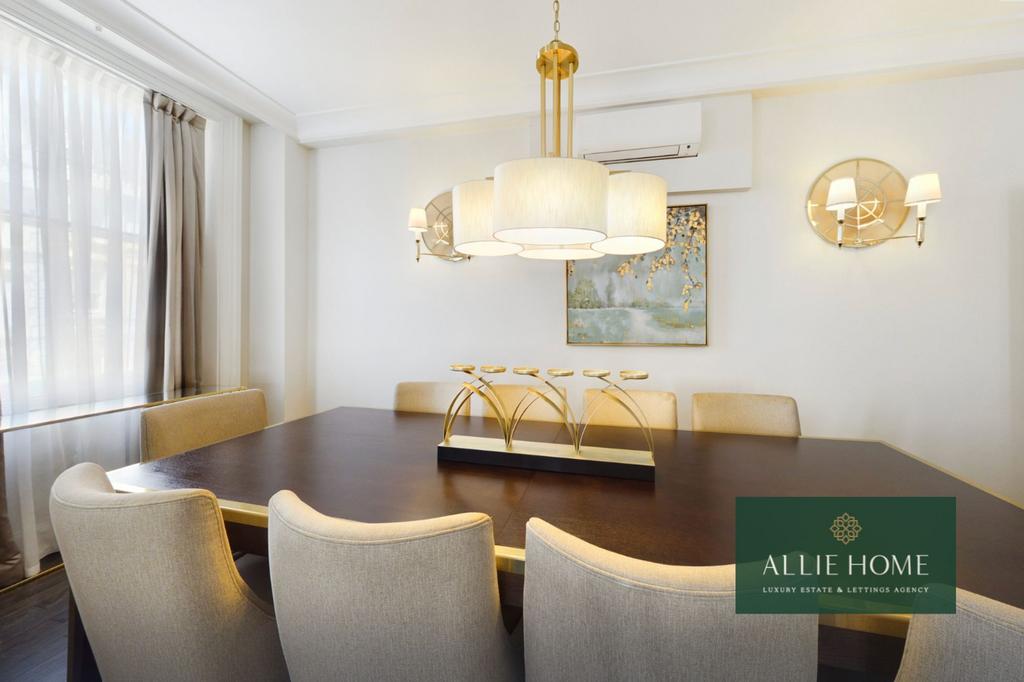 The fully furnished layout includes separate living, dining, kitchen, and bedroom zones, complemented by a modern, well-equipped kitchen ideal for home cooking. Each bedroom enjoys the privacy of an ensuite bathroom with shower and/or soaking tub, finished with premium L’Occitane amenities. Additional comforts include complimentary Wi-Fi, a comprehensive home entertainment system, in-room electronic safe, washer/dryer, and air conditioning. With biweekly housekeeping, full-suite hotel-style services, and access to a 24-hour gym, steam room, and sauna, this home delivers a refined serviced-living experience just steps away from Kensington Palace and the Royal Parks—ideal for corporate stays or extended residential arrangements.