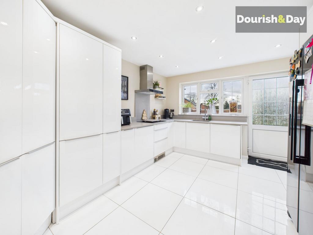The lounge is beautifully finished, featuring unique contemporary panelling behind the TV that gives the room real personality. Glass double doors open into the spacious dining room, which in turn leads through to the kitchen, creating a lovely, flexible circular flow ideal for hosting, family gatherings or simply moving comfortably through the home.