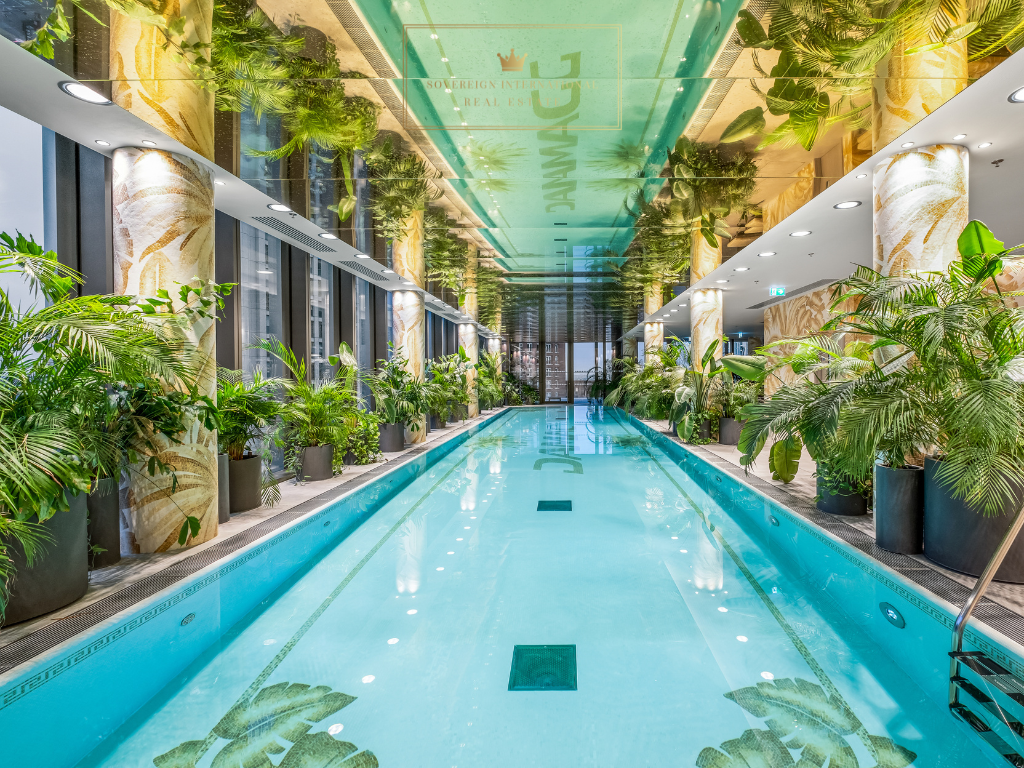 Indulge in the luxurious amenities, including a dedicated children's play area with pool tables and PlayStation, a residence lounge, and an expansive indoor spa with a temperature-controlled pool, jacuzzi, sauna, steam room, lounge area, and private winter garden.