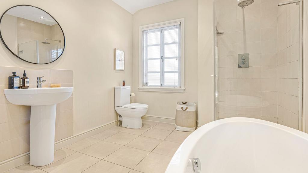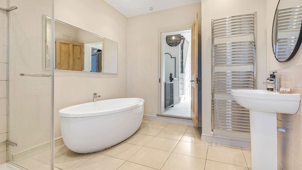 Upstairs, the first floor offers two bedrooms including an impressive master with plenty of space to stretch out and unwind. The family bathroom continues the Victorian theme, featuring a slipper bath for long soaks, and a separate, walk-in shower for busy mornings.