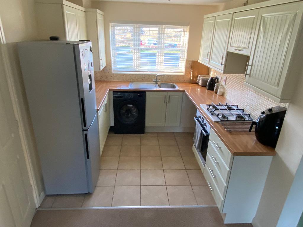 Fitted kitchen with built in electric oven and gas hob. Space and plumbing for a washing machine and under counter fridge/freezer. UPVC double glazed window.