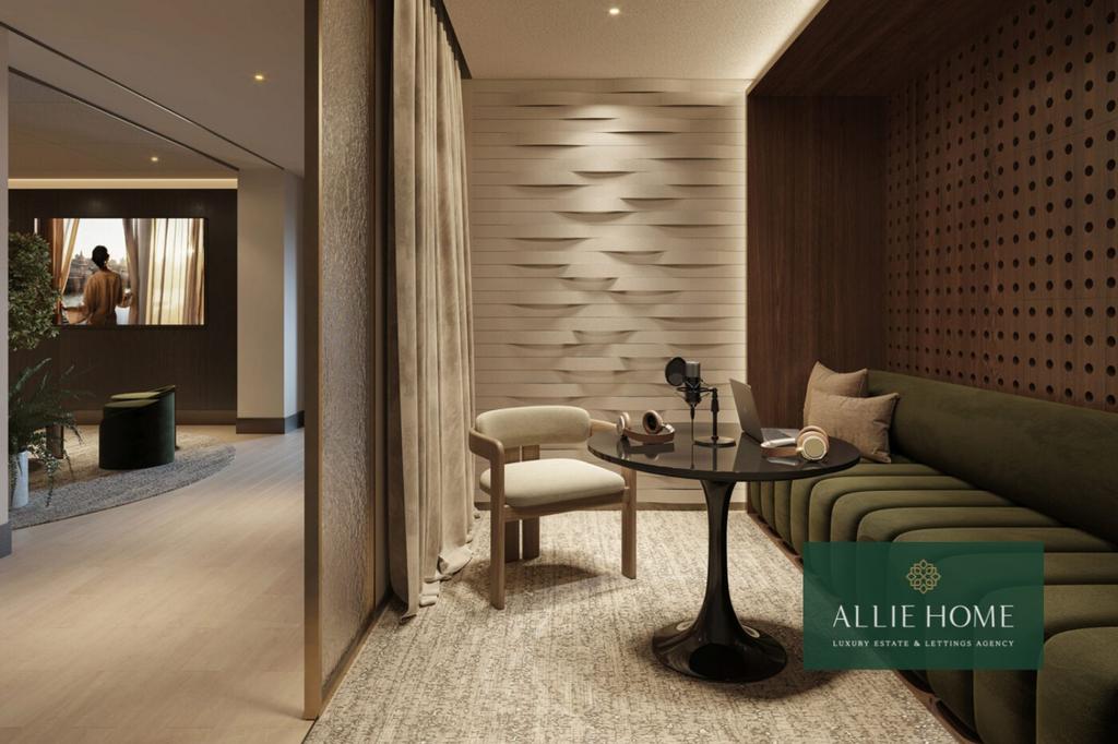 Residents enjoy access to a curated collection of exclusive amenities, including a state-of-the-art gym, screening room, podcast studio, padel court, pool, spa, and sky lounge. The development also provides a 24-hour concierge and security, ensuring a seamless living experience. Expansive terraces and landscaped spaces create a calm retreat, while the building’s proximity to the Mandarin Oriental Hotel enhances its prestige and long-term investment value.