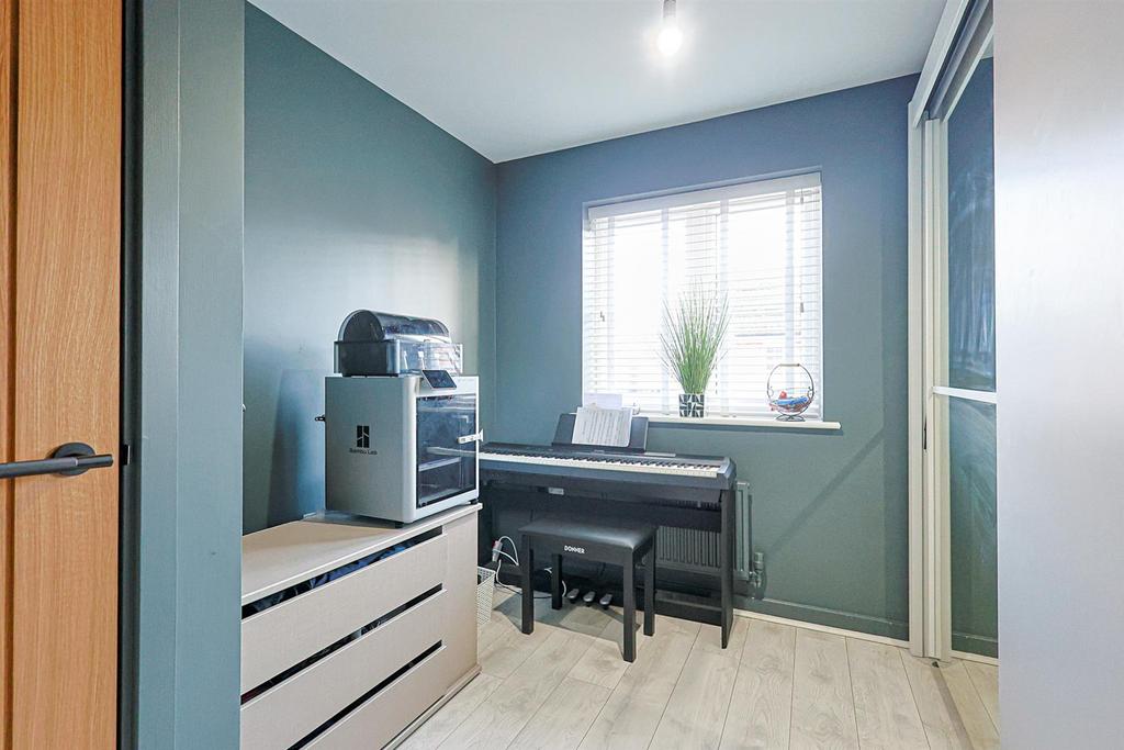 Bedroom Five - 2.95m x 2.72m (9'8 x 8'11) - Ceiling mounted light fitting, window to front, wall mounted radiator, fitted storage and display unit and wooden effect flooring throughout.