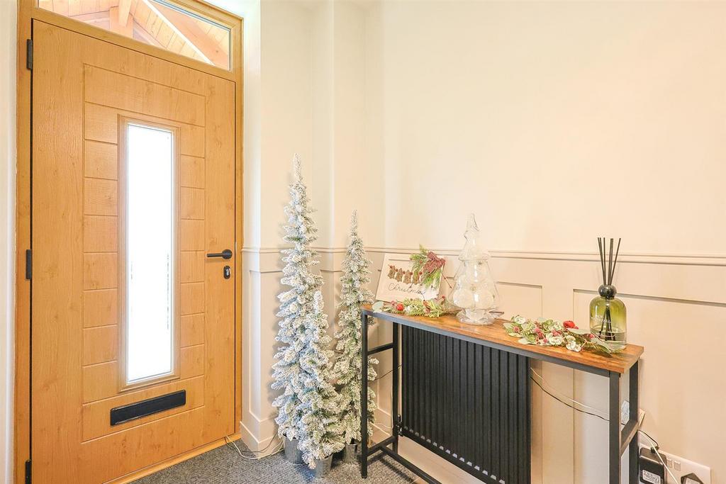 Hallway - 4.14m x 1.60m (13'7 x 5'3 ) - Wooden effect composite door with window overhead to front. Ceiling mounted light fitting, wall mounted radiator and Amtico flooring throughout. Access to lounge, downstairs WC and living/kitchen area.