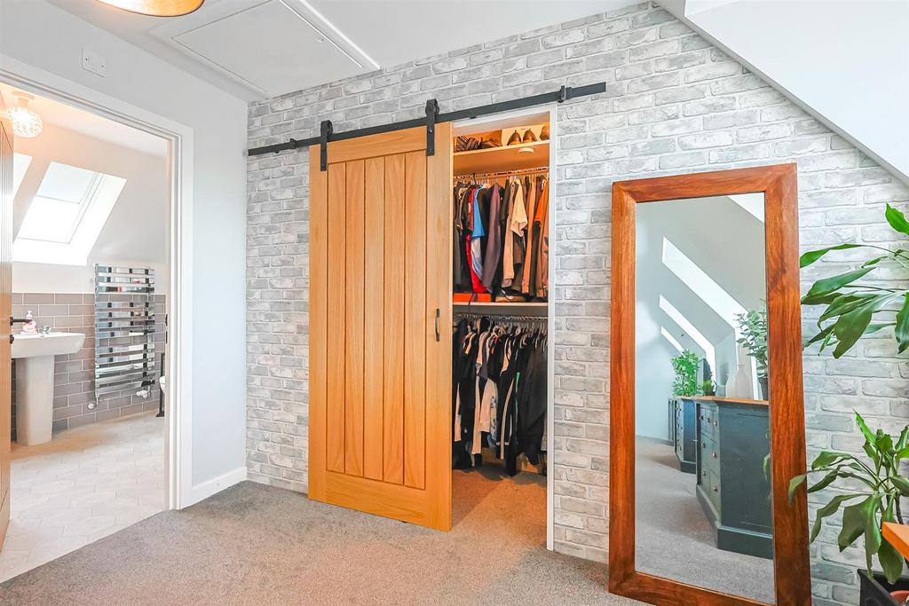 Bedroom One - 7.14m x 5.99m (23'5 x 19'8 ) - Two ceiling mounted light fitting, three windows to front with double Velux window to rear, built-in storage cupboard and separate walk-in wardrobe area, two wall mounted radiators and access to ensuite.