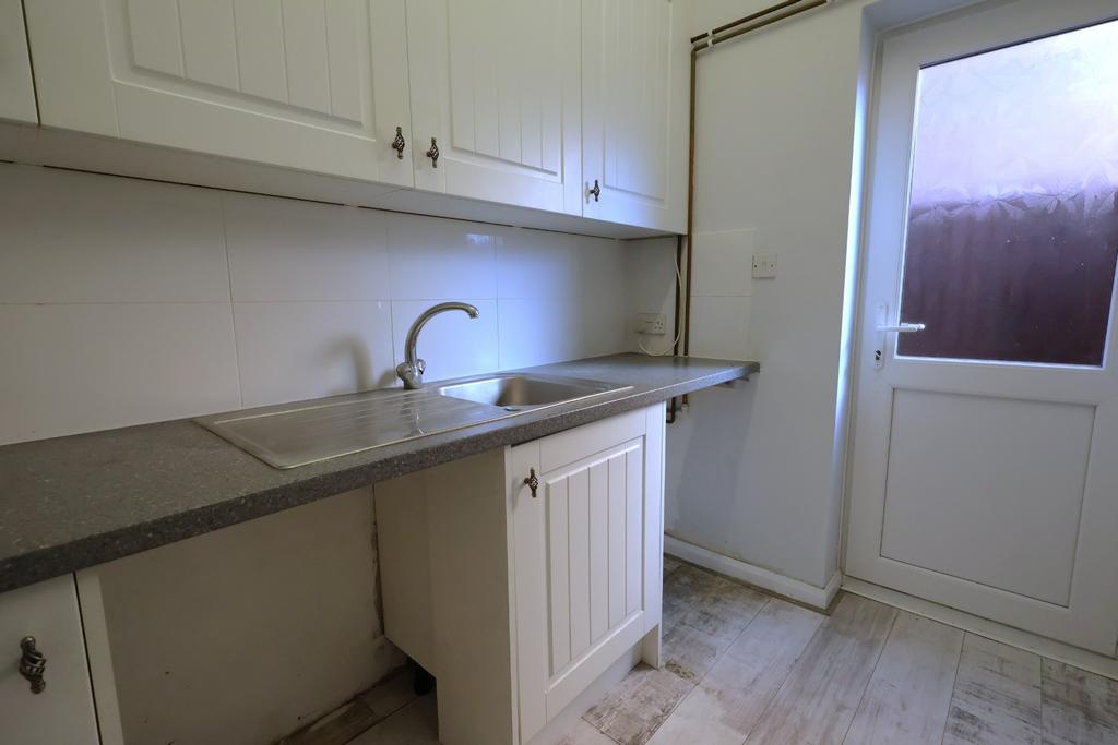 UTILITY ROOM: Fitted units with spaces for washing machine and tumble dryer. Door to side aspect.