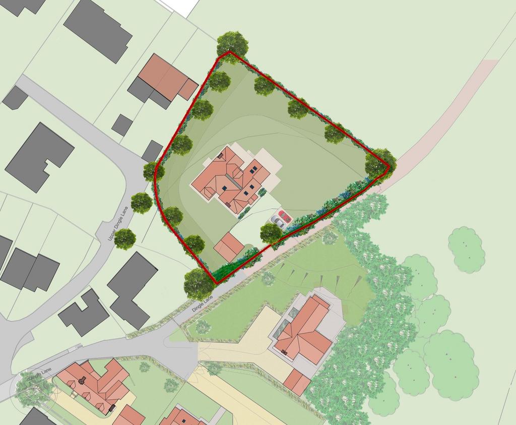- An exceptional building plot with planning consent for a beautifully designed large detached 3800 square foot house