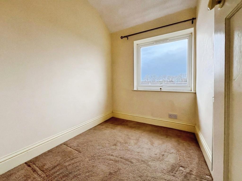 Fitted with a three piece suite comprising of a low level WC, pedestal wash hand basin, panelled bath with shower overhead. Partly tiled walls, vinyl flooring, heated towel rail, window to rear, extractor fan.