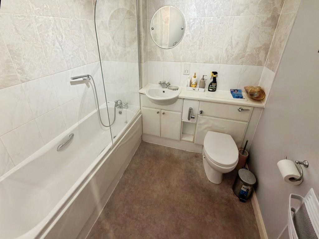 BATHROOM The bathroom is fitted with a panelled bath with shower over, low level WC and a wash hand basin. Additional features include an electric radiator, fully tiled walls and tiled flooring.