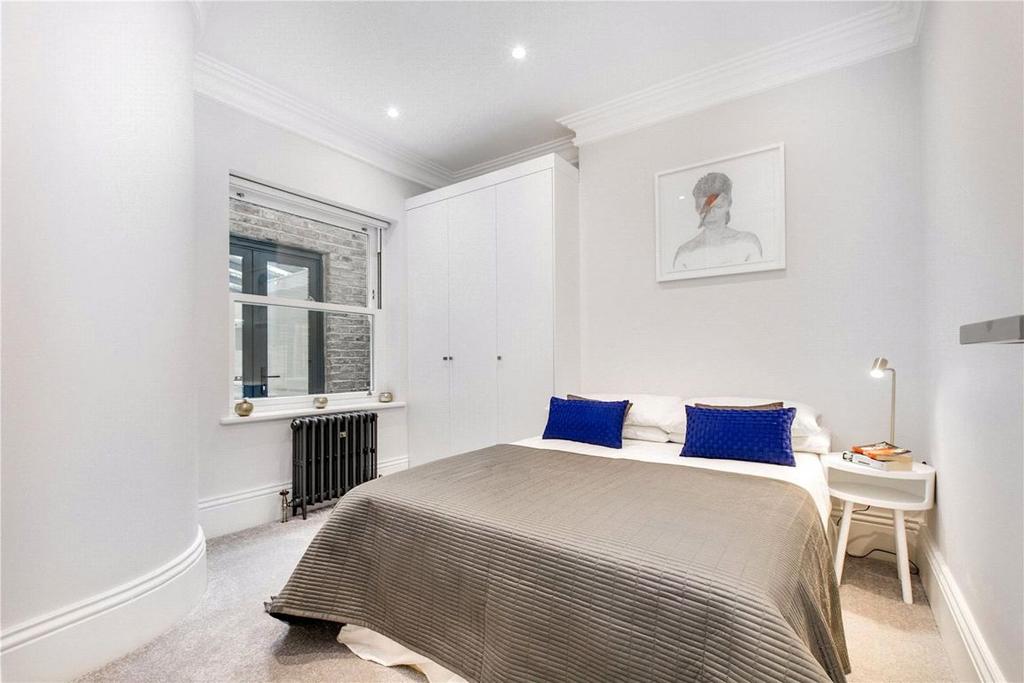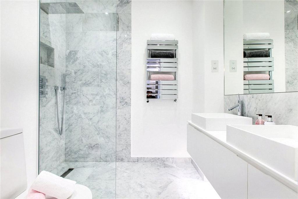 The large master bedroom has an en suite bathroom featuring a double wash basin and a lovely bay window, flooding the area with natural light. There is also a second double bedroom and both rooms offer built-in storage. Additionally, an immaculately designed bathroom enjoys sleek modern fittings and a generous wide bath.