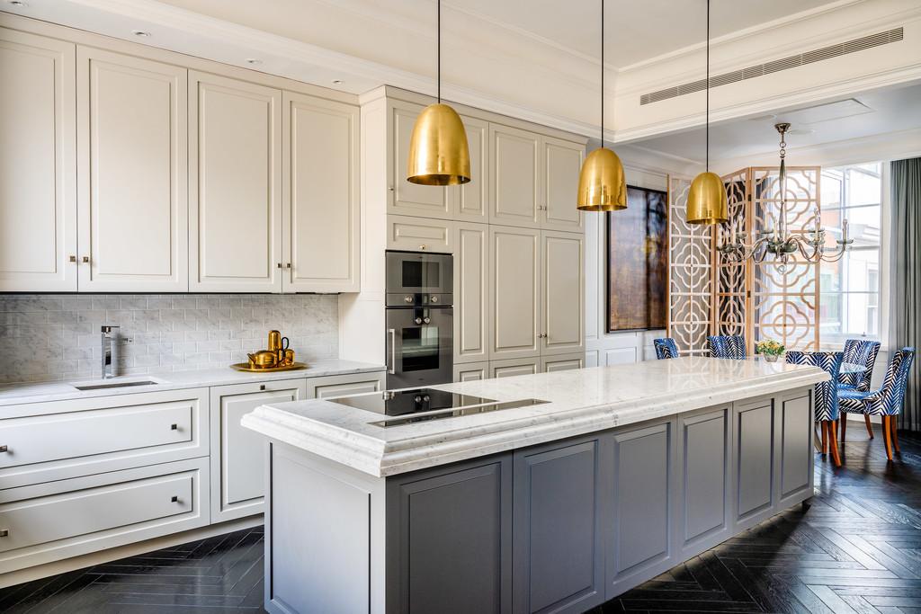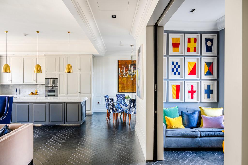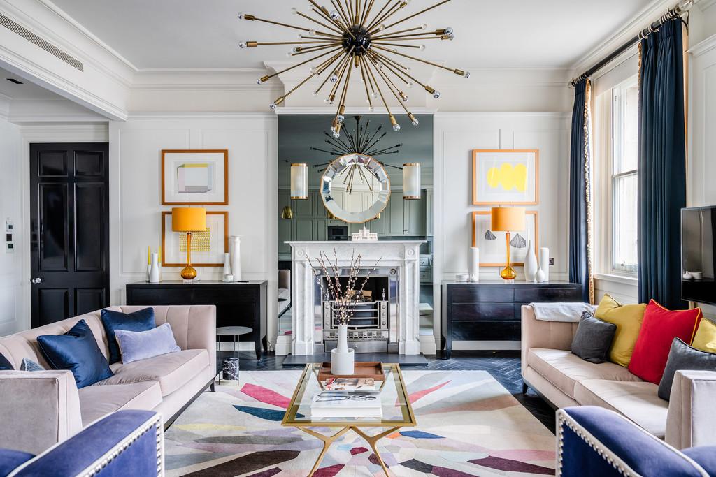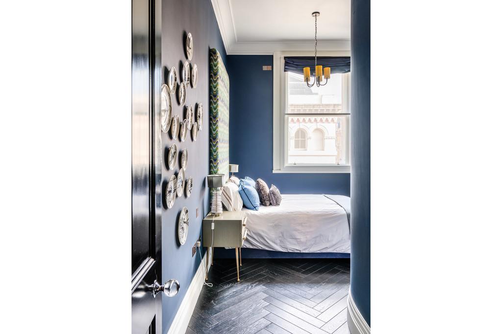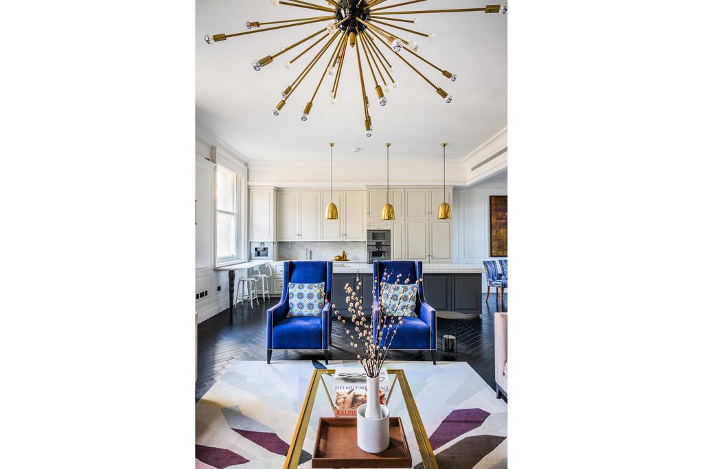 The spacious reception room is arranged in distinct living and dining zones, with a large marble-topped island defining the open-plan kitchen. A separate study area with bespoke joinery is positioned off the main living space, providing an ideal home workspace. Both bedrooms are generous double suites with bespoke wardrobes and luxurious bathrooms finished in marble, nickel-plated brassware and bespoke joinery. The principal suite features a freestanding bath and walk-in shower, while the second bedroom has a private ensuite shower room. Comfort cooling is installed throughout for year-round comfort.