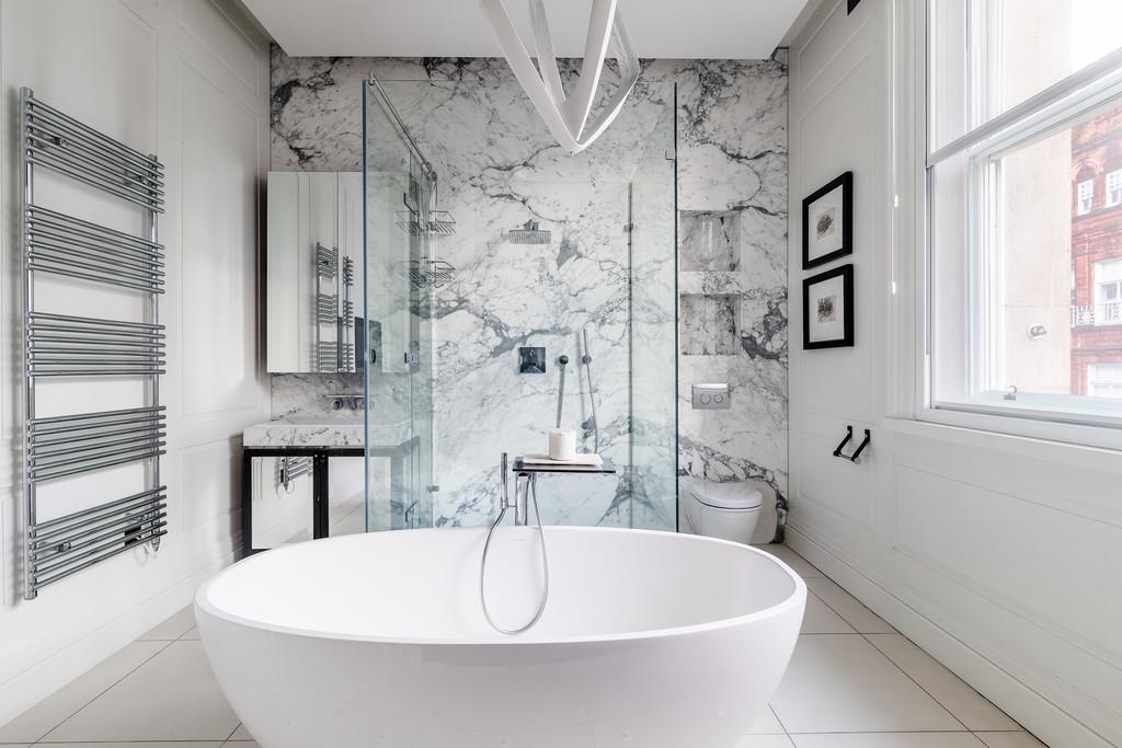 An immaculately presented two double-bedroom lateral apartment forming part of 19 Bedford Street, a boutique development by British Land and Dukelease in the heart of Covent Garden. Finished to an exceptional standard, the apartment occupies the second floor of a handsome Grade II listed Portland Stone building, with lift access and daytime concierge. The interiors feature high ceilings, dark-stained herringbone wood flooring and large sash windows overlooking Bedford Street, creating an impressive sense of light and volume throughout.