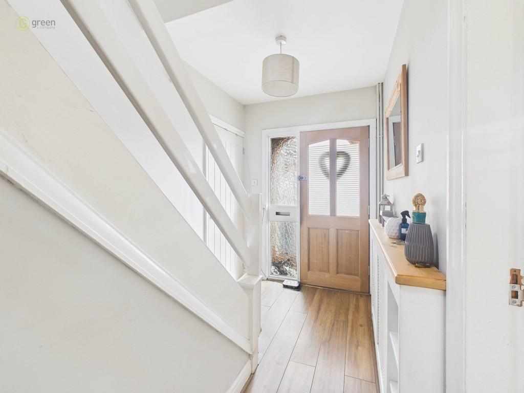 ENTRANCE HALLWAY Having laminate wood flooring, gas central heating radiator, ceiling lights.