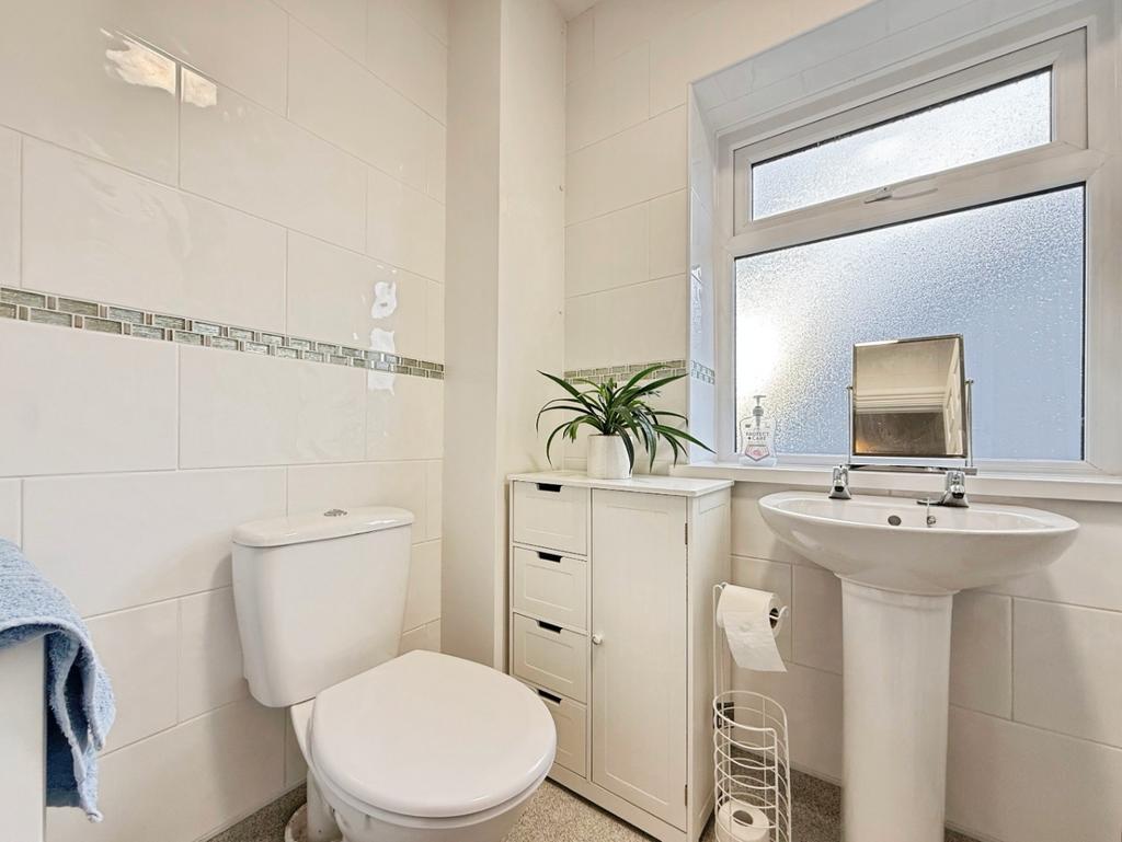 Fitted with a white three piece suite comprising of W/C, pedestal wash hand basin, walk in shower enclosure, wet room style flooring, uPVC double frosted window to rear elevation.