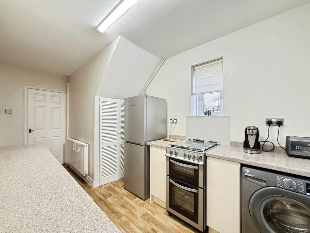 Fitted with a range of matching base units in cream high gloss 'j pull' units with complimentary work surface, stainless steel sink with mixer tap, space for freestanding cooker, space for washing machine, uPVC double glazed window to front and side elevation, understairs storage cupboard, radiator.