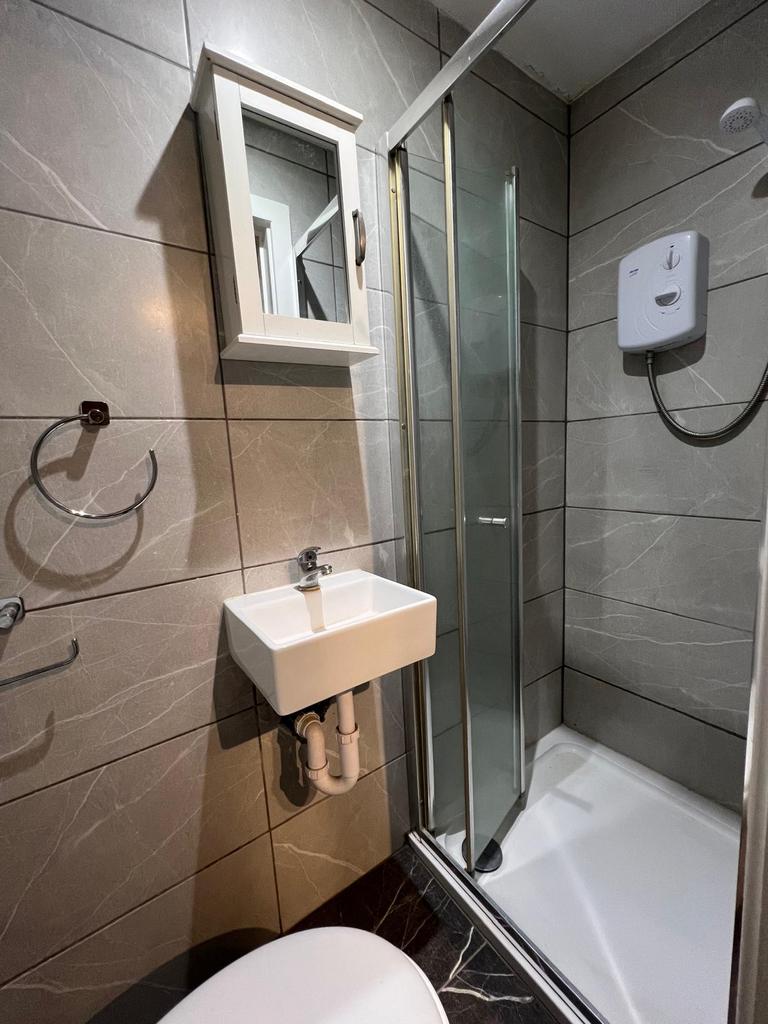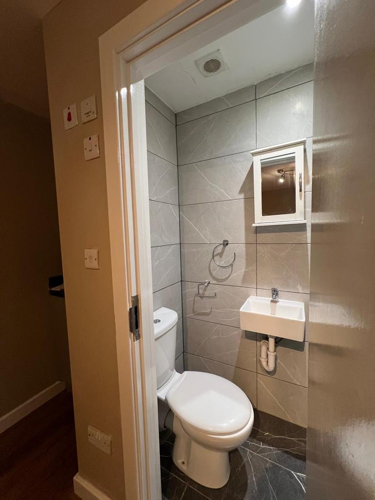 Second-floor studio flat with a shared main kitchen to let in London N16.