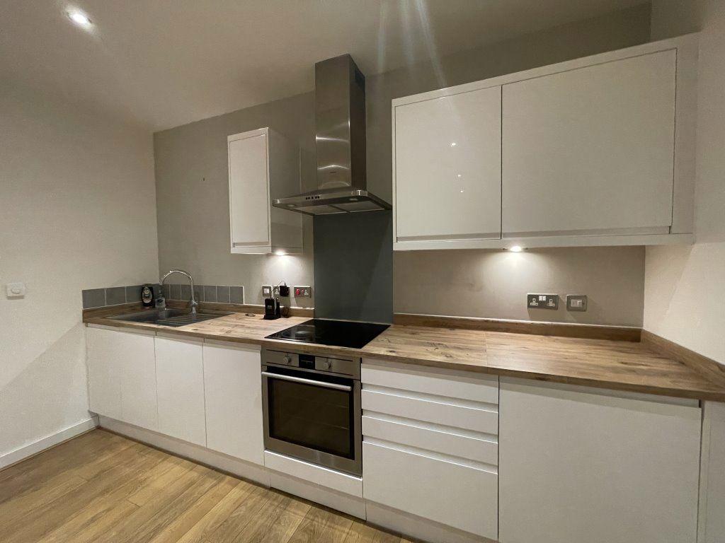 The property features a bright and spacious open-plan living area, finished to a contemporary standard throughout. The modern fitted kitchen includes sleek units and ample storage, while the generous double bedroom offers a comfortable and relaxing space. A clean, modern bathroom completes the accommodation.