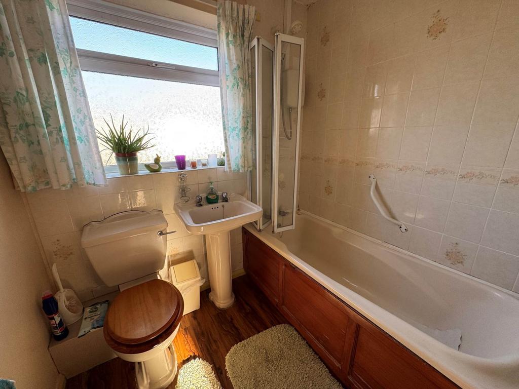 With a double glazed window to the rear elevation, a suite comprising of a bath with shower over, pedestal wash hand basin, close coupled WC, tiling to splash prone areas, radiator, ceiling light.
