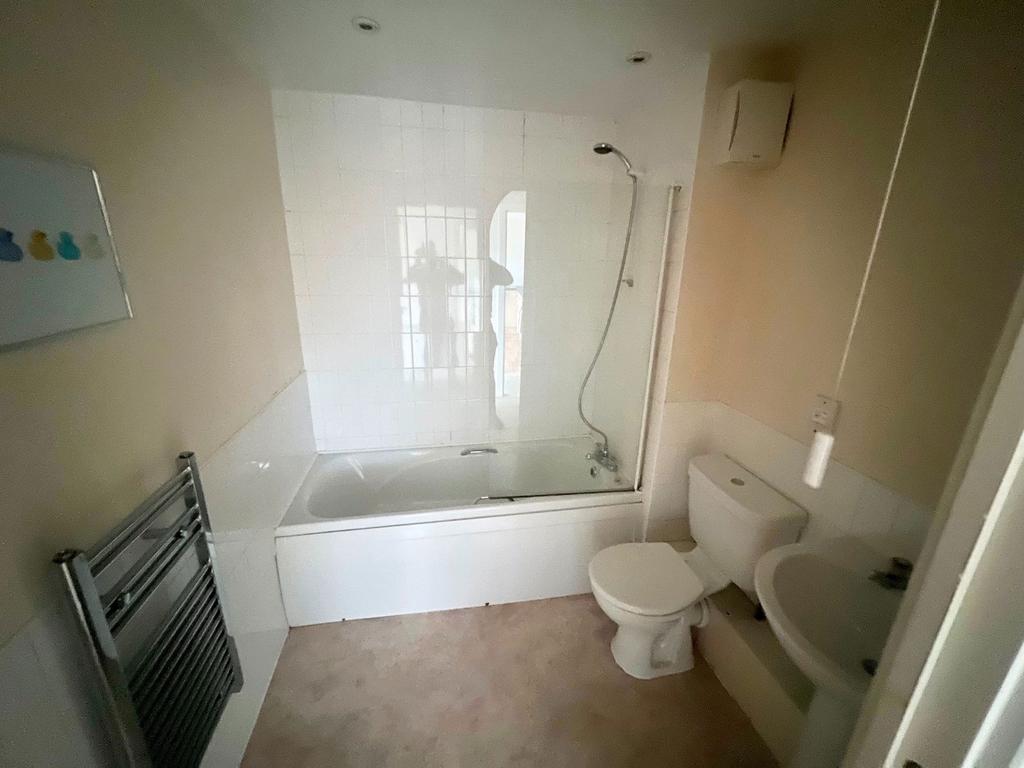 Family-sized bathroom complete with shower-over-bath, toiler and basin.