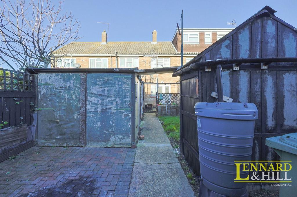 Outside, the 45ft rear garden has a small decking area with access to the workshop; a space for projects, storage or potential for conversion to more living space. A small lawn area and a storage shed for gardening tools. There is rear access via large gates from the access road, allowing the use of the garage/carport for parking. Over 18ft in length, this garage is suitable car parking within the security of the property boundaries.