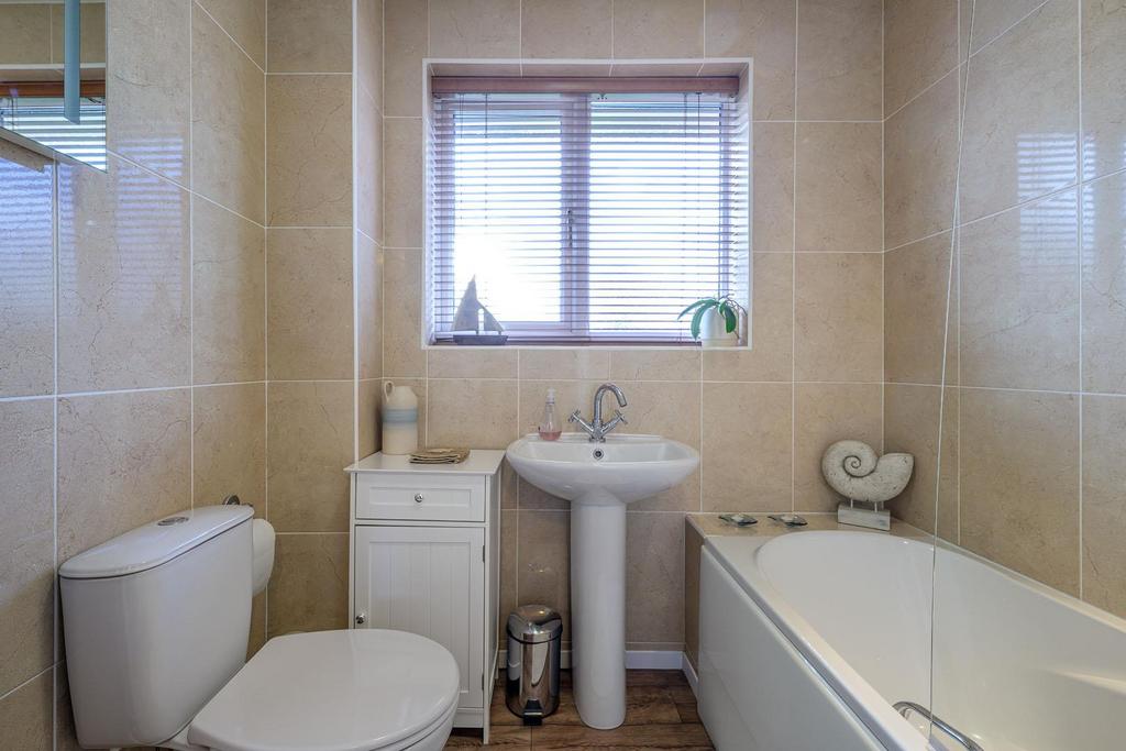 Bathroom - 1.89 x 1.9 (6'2" x 6'2") - With a door leading from the landing, tiled walls, bath with shower over, WC, wash hand basin, double glazed window to rear and a chrome heated towel rail.
