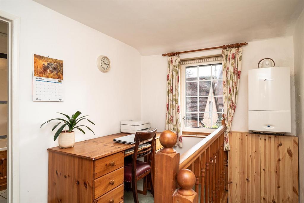 Stairs from the kitchen take you up to the first floor, where there is a study area, a good-sized double bedroom and a family bathroom.