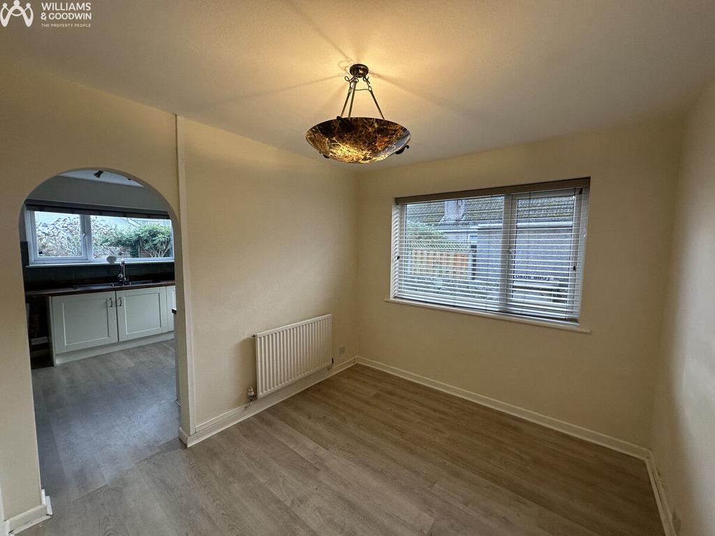 An open plan layout between the dining area and kitchen with an opening between the two adjoining rooms offering practical spaces.
