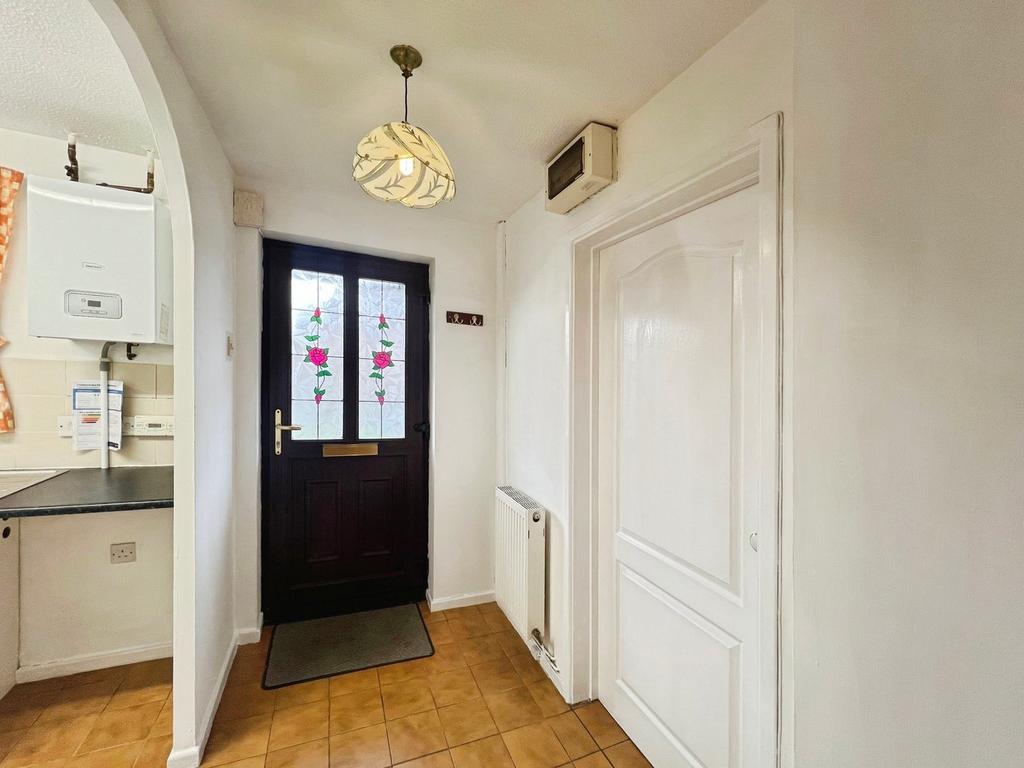 Stippled ceiling, emulsioned walls, radiator, tiled flooring, door leading to the downstairs w.c. and archway into the kitchen.