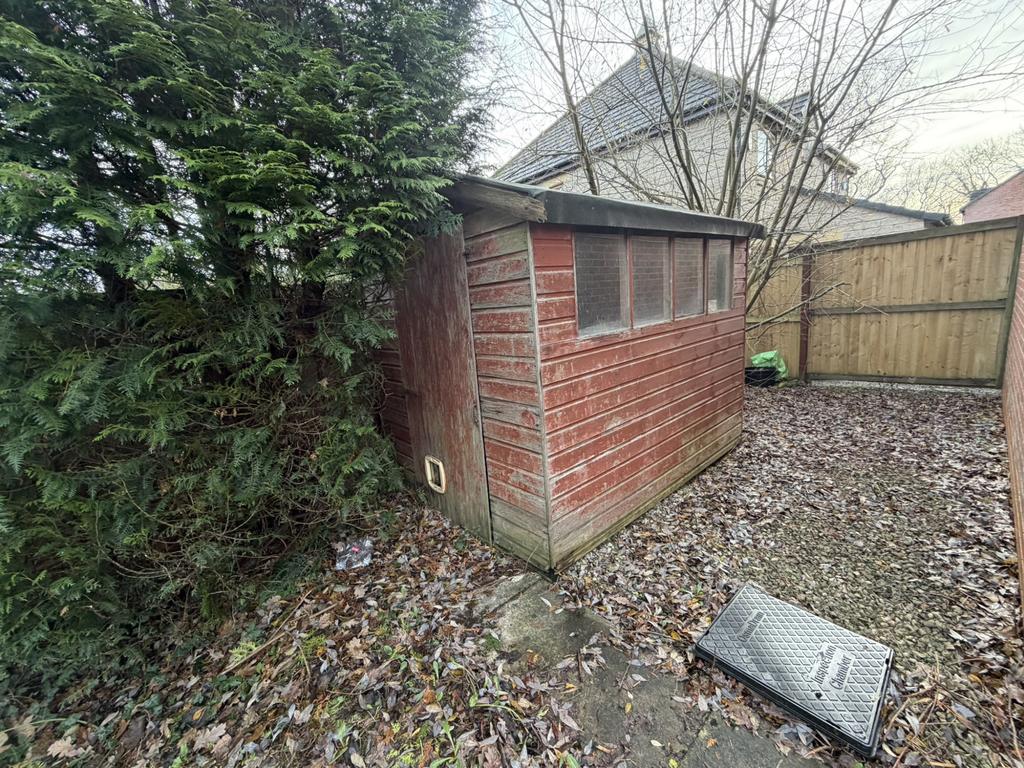 Up and over door. Power and light. Plumbed for washing machine. Wall mounted combi boiler. Privacy door to rear garden.