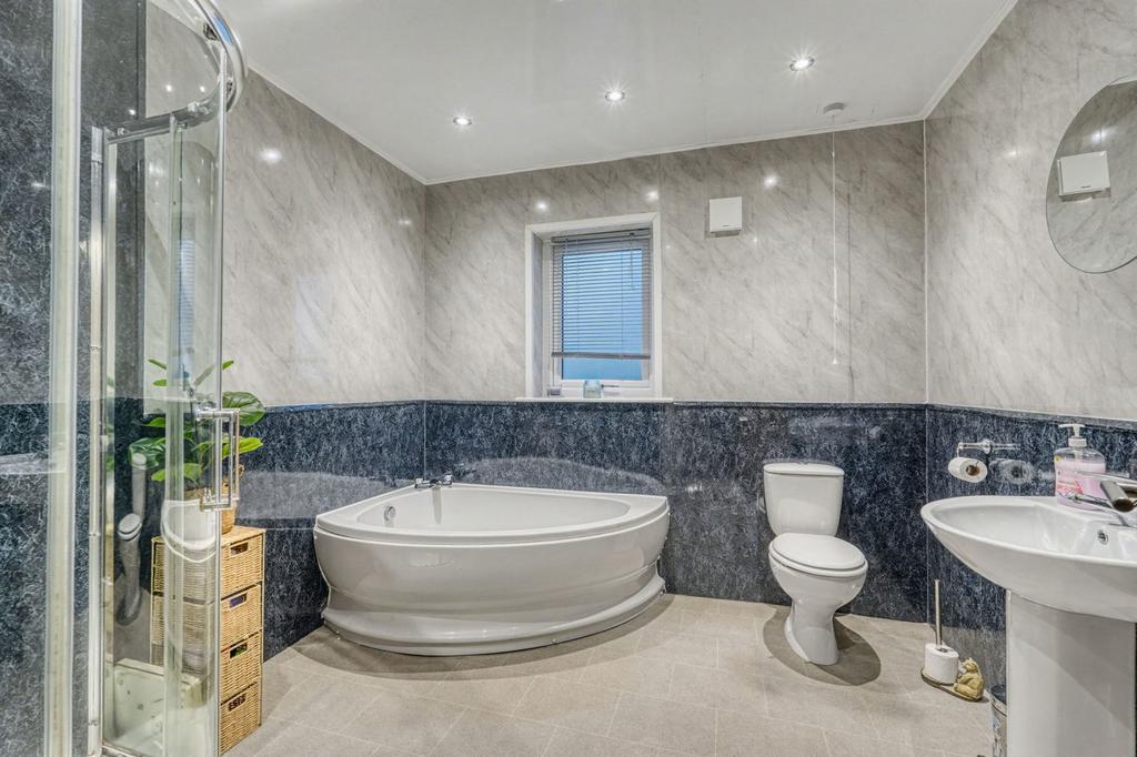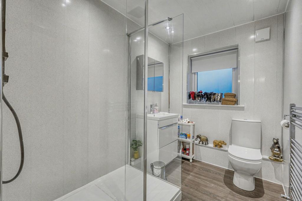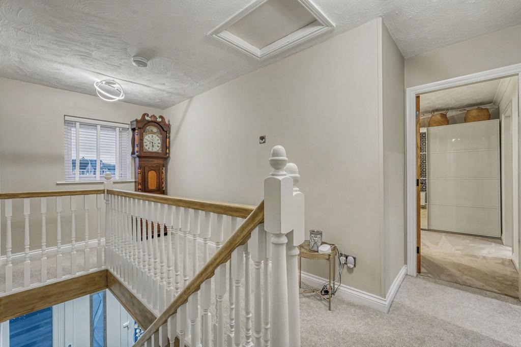 Upstairs, all three bedrooms are doubles – so there’s no awkward box room to dodge. The main bedroom has a modern ensuite, and the separate four piece family bathroom includes a bath and walk-in shower.