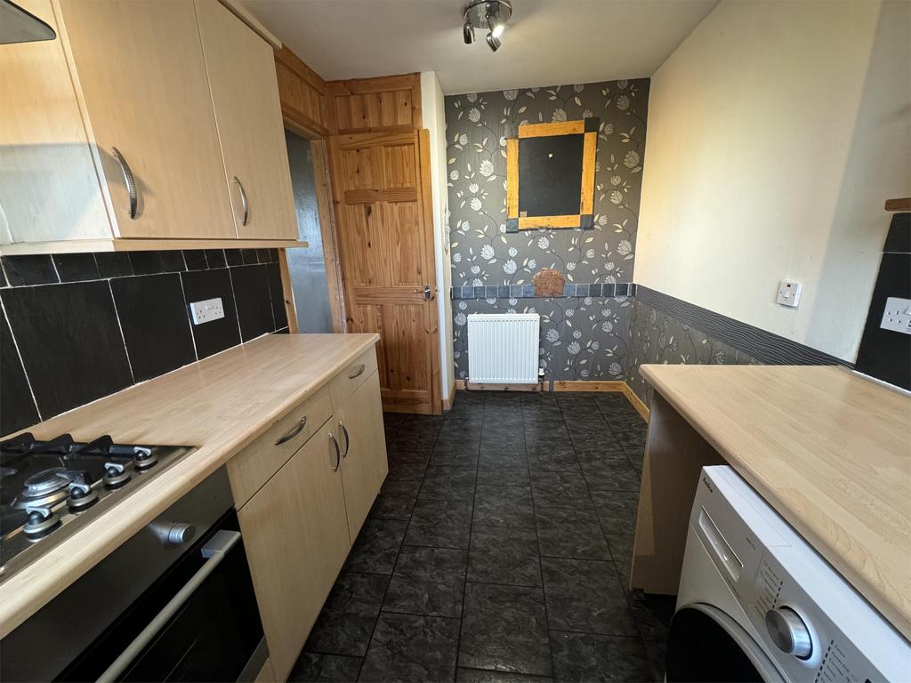 The accommodation comprises: good size living room with views to the front and rear of the property; kitchen with both floor and wall cupboards, integrated electric oven and gas hob, space and plumbing for washing machine; bedroom 1 is a large double room to the rear of the property with wardrobe space; bedroom 2 is a double room to the rear of the property with wardrobe space; bathroom with W.C., washhand basin and shower over bath. The garden to the front of the property is laid to lawn with a paved seating area.