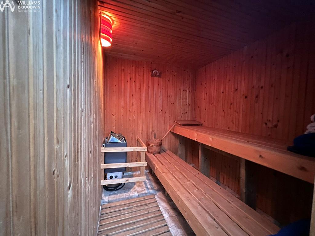 Annexe shower room. Three-piece suite comprising shower, pedestal wash hand basin and WC. Heated towel rail.