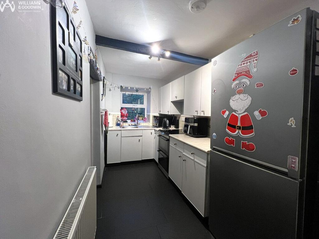 Fitted with a matching range of base and eye level units with worktop space over, stainless steel sink, space for fridge/freezer and cooker. Window to side. Radiator. Storage cupboard.