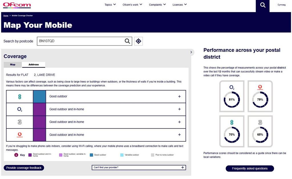 Our mobile and broadband searches were carried out via Ofcom. You can do this directly by visiting Mobile and Broadband checker by Ofcom