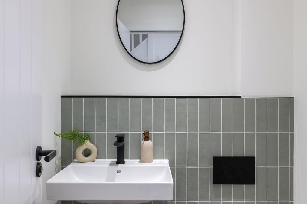 Upon entering, a welcoming hallway guides you through to all areas of the home. Off the hallway is a convenient WC for guests. The meticulously designed Norden kitchen showcases a refined 'grey linen' finish with bronze accents, paired with 'antique bronze' countertops, upstand, and splashback. To elevate both style and functionality, a range of integrated Hotpoint appliances is included: an oven, induction hob, fridge/freezer, dishwasher, washing machine, and canopy extractor. The ground floor is completed by a spacious living room at the front of the property. Upstairs, you'll find three bedrooms along with a family bathroom. The impressive Norden bathrooms boast white sanitaryware, elegantly combined with matte black fixtures and Boydens tiles. The stylish interplay between white and matte black elements creates a contemporary, sophisticated look that is both timeless and striking.