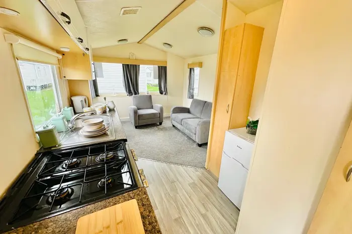 Positioned on a tidy plot with convenient parking nearby, the caravan is within easy reach of the park’s amenities, which include a children’s play area, clubhouse, and landscaped surroundings.