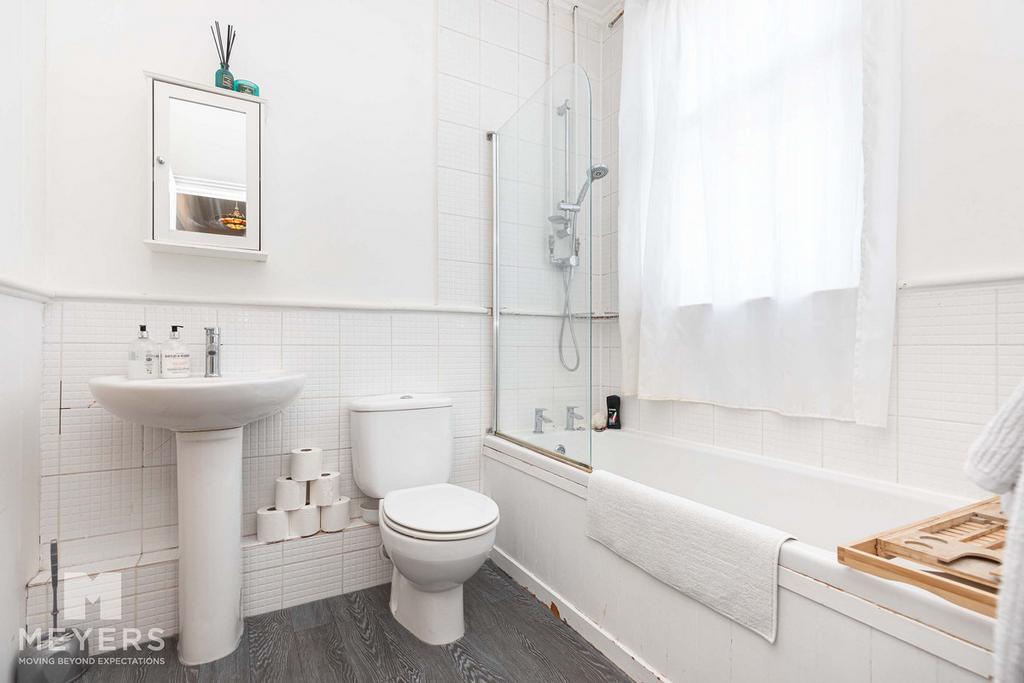 - Three-Piece Family Bathroom WIth A Shower Over The Bath
