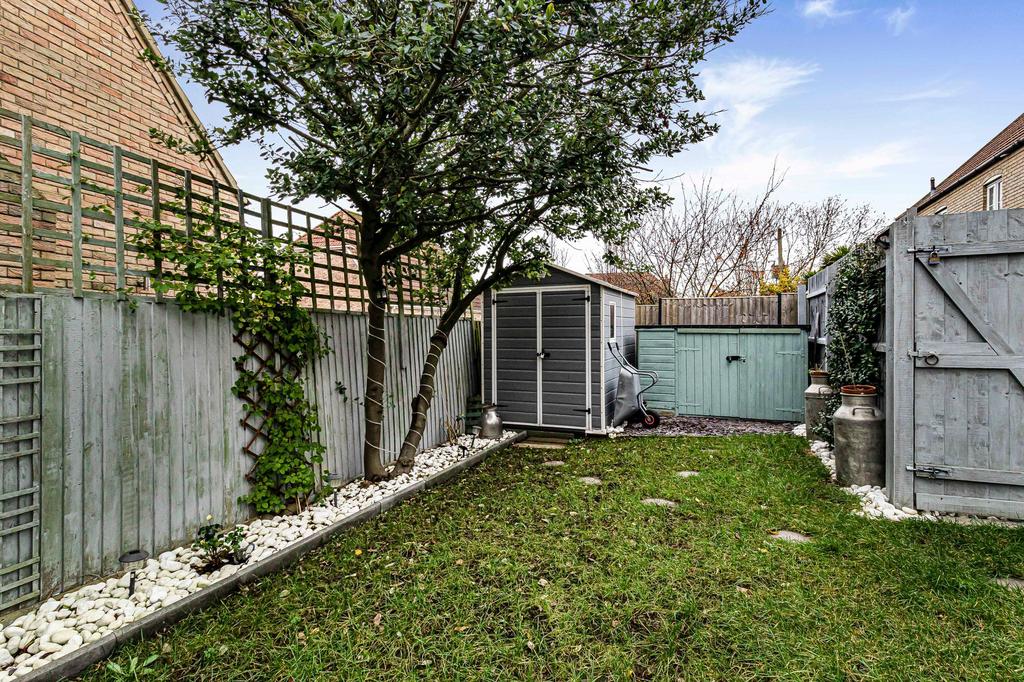 To the rear of the property is a south facing garden which has been well maintained by the current owners. The garden consists of an extended patio leading onto a lawn with a couple of small trees and storage shed. gated pedestrian access leads out to the driveway.