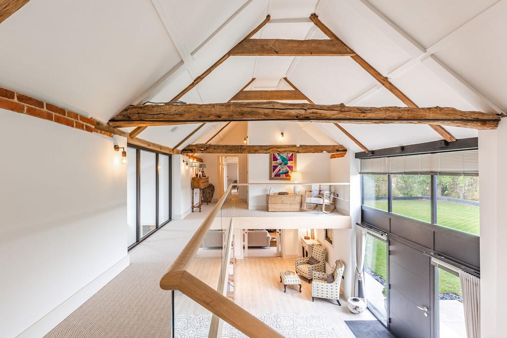 The accommodation to the main barn includes a stunning open-plan reception hall with a grand galleried landing. The open-plan living extends to dining and sitting areas that are both light and spacious, with superb views over the garden. The kitchen design provides delightfully fitted, bespoke units and a super size island, where family dining and entertaining is at its best, alongside the most innovative, tucked away, pantry/scullery, allowing the main kitchen surfaces to be free of smaller appliances, where preparation space is at a premium. Our vendors have put so much thought into this design.