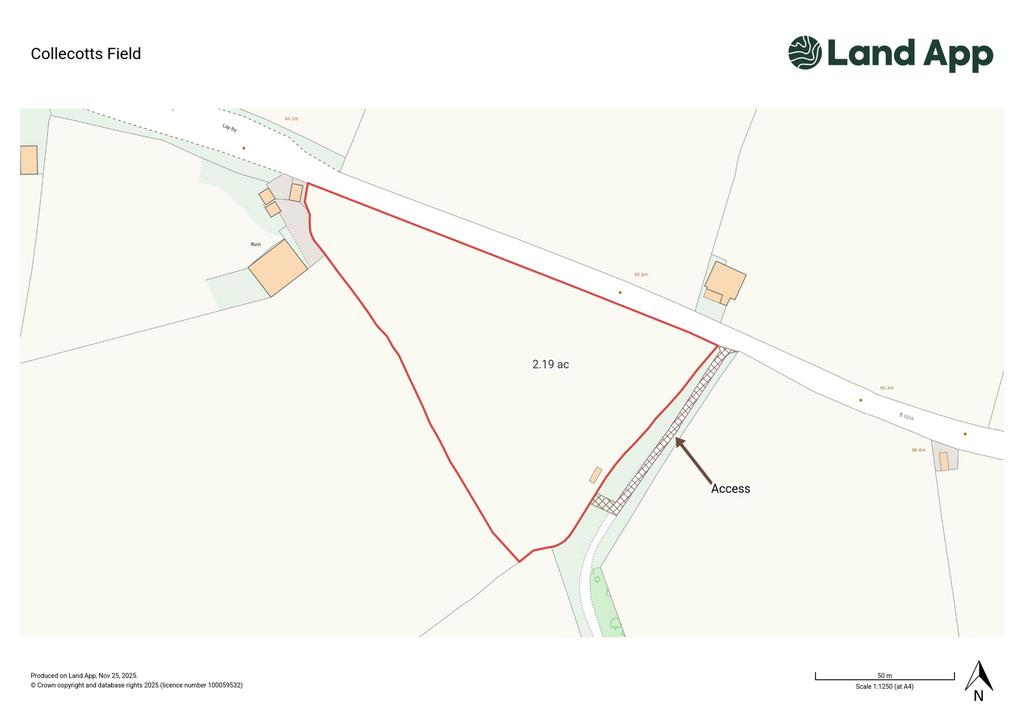 Collecotts Field extends to some 2.19 acres (0.89 hectares) and comprises a level triangular shaped field down to permanent pasture.