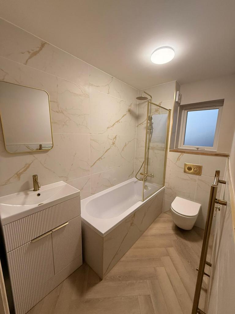 Inside the apartment features a bright and spacious living area, a well-sized double bedroom, a modern fitted kitchen including integrated appliances (Hob, oven, integrated extractor, integrated fridge/freezer & integrated dishwasher), Newly fitted complete bathroom suite comprising of wall hung toilet an L type shower bath & Vanity sink unit with brushed brass accents and classy matt Calcutta tiles. The property further benefits from gas central heating and full double glazing, ensuring year-round comfort and energy efficiency. With an EPC rating of C, the flat itself enjoys relatively low running costs.