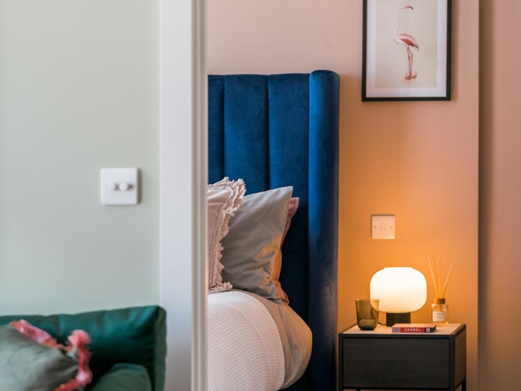 Stylish bedrooms including bespoke fitted wardrobes with full height mirror, hanging rail and storage. Double ottoman beds with storage, feature headboard and 1,000 individual pocket sprung mattress made from natural materials and marble effect bedside tables.